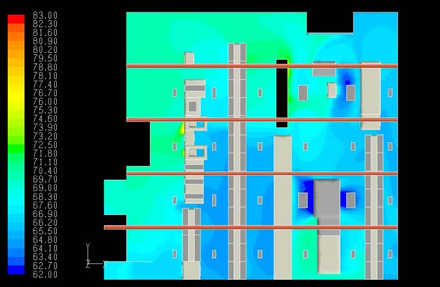 Our engineers use CFD modeling to routinely simulate and evaluate a multitude of building environments such as building ventilation systems. Using the most accurate numerical tools available, our team assesses: